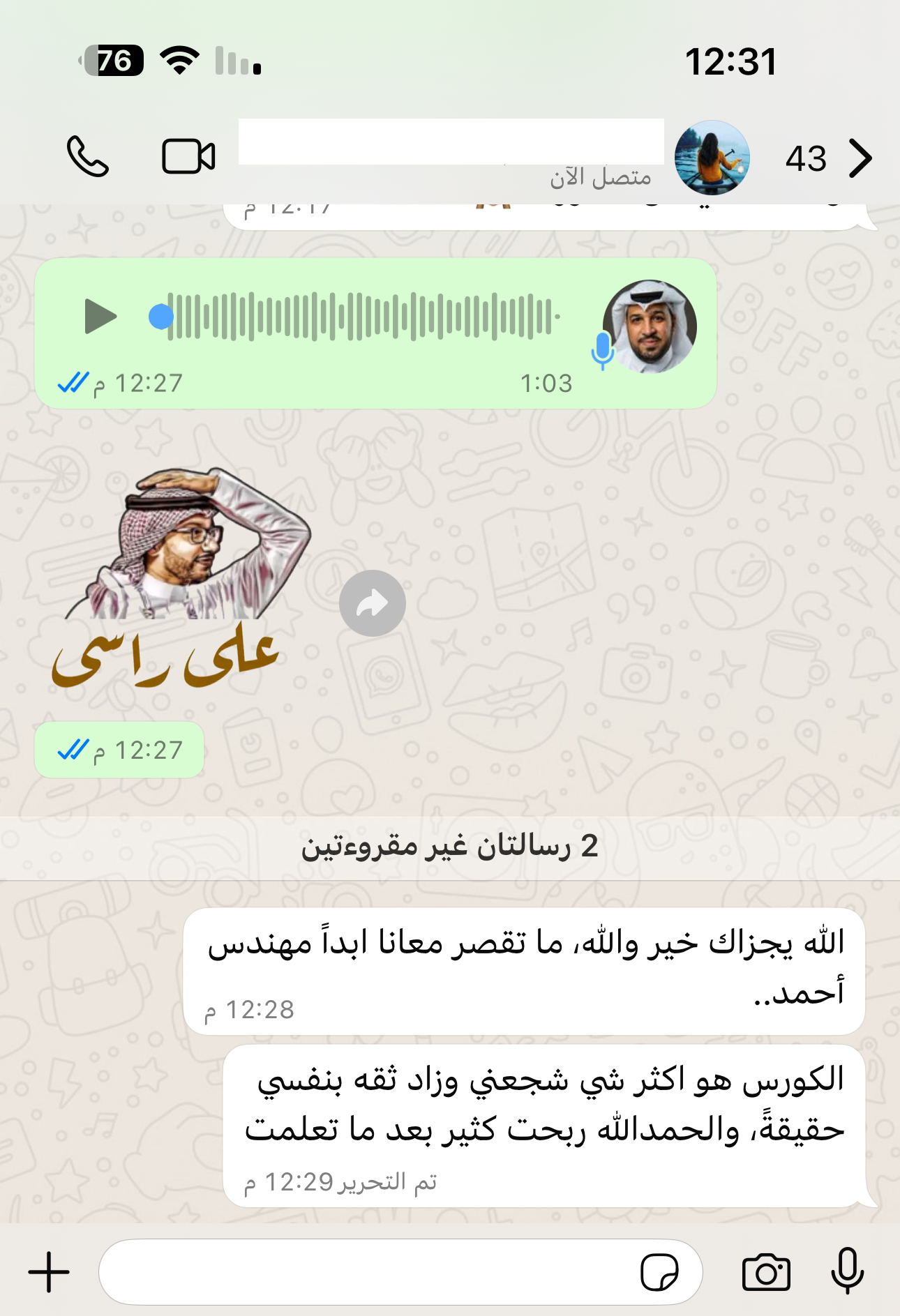 دعم فني مني أنا شخصياً في حال وجود أي استفسار او سؤال منك على الواتس اب